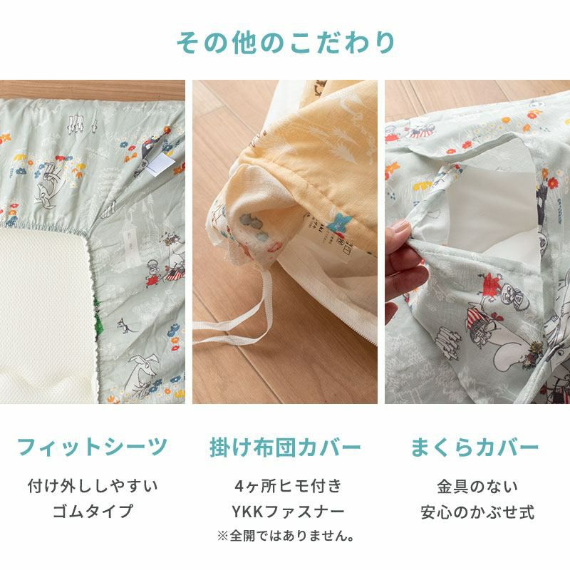 5. ムーミン 全部洗える ベビー布団9点セット ダブルガーゼ 日本製