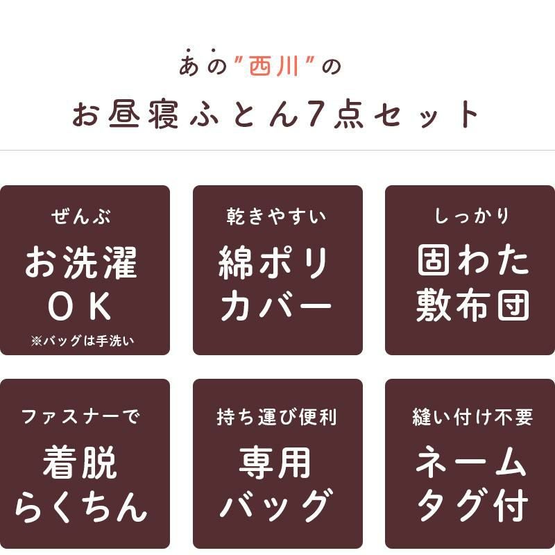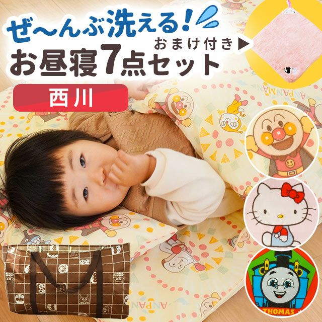 【タオル付き】西川 キャラクター お昼寝布団7点セット