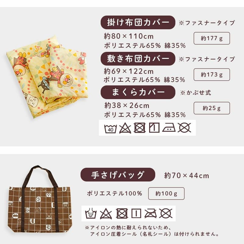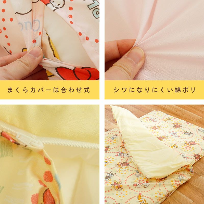 掛け布団カバーと敷き布団カバーは、取り付け・取り外しがしやすいファスナー式。 スライドしやすいファスナーで大きく開くので、お子さまの軽い力でも簡単にお布団の準備ができます。 園によってヒモ指定やファスナー指定が異なりますので、ご購入前に必ずご確認ください。