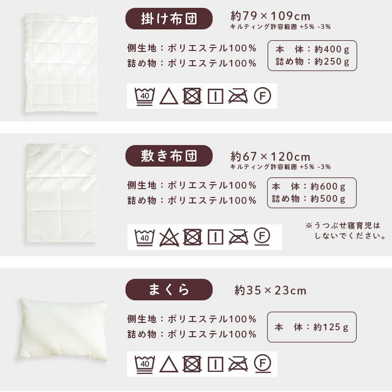 ■この商品は、あくまでもお昼寝用としてのおふとんですので、長時間の睡眠には適しておりません。