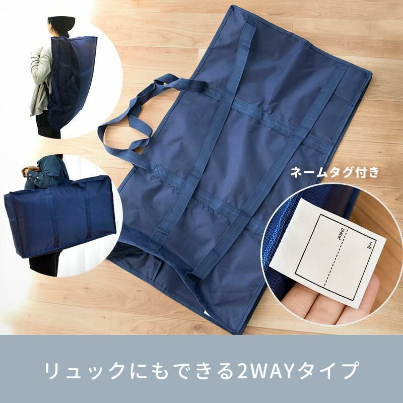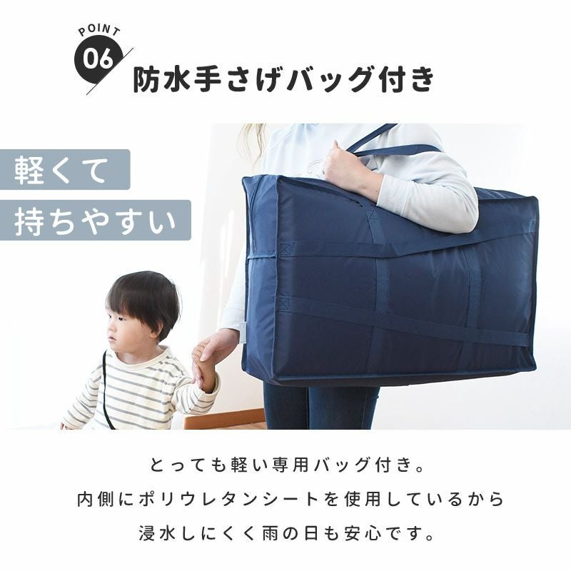 軽くて持ちやすい専用バッグ付きです。内側にポリウレタンシートを使用しているから浸水しにくく雨の日も安心です。リュックにもできる2WAYタイプ。