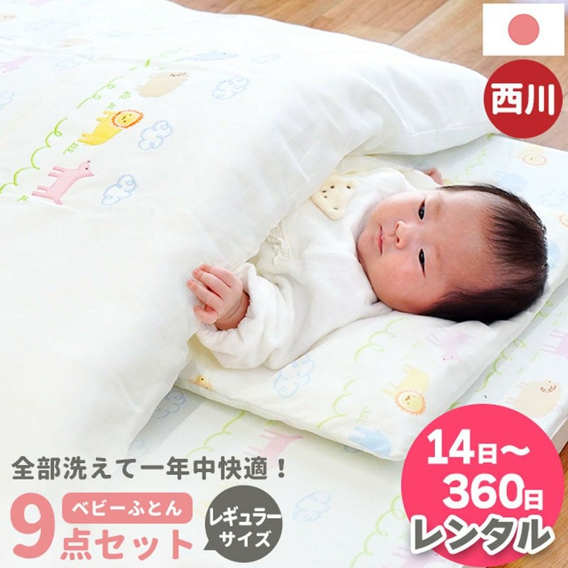 4. 【レンタル】西川 ベビー布団セット レギュラータイプ 日本製 洗える 布団9点セット アニマルパーク
