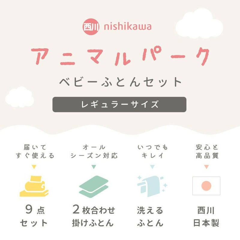 【レンタル】西川 ベビー布団セット レギュラータイプ 日本製 洗える 布団9点セット アニマルパーク