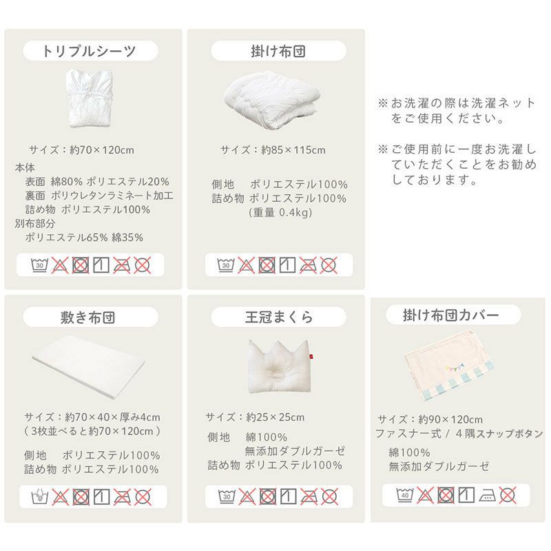 『トリプルシーツ入り ベビー布団6点セット』