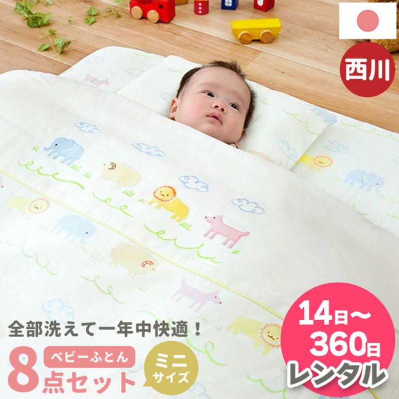 4. 【レンタル】西川 ベビー布団セット ミニサイズ 日本製 洗える 布団8点セット アニマルパーク