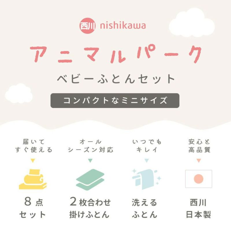 【レンタル】西川 ベビー布団セット ミニサイズ 日本製 洗える 布団8点セット アニマルパーク