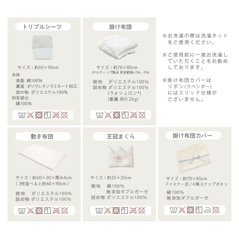 他の画像を見る 即日発送 会員セール ベビー布団セット ミニ 60×90cm用 安心6点セット 「キホンが揃ったお手軽セット」シンプル モノトーン 刺繍 スター フラッグ 日本製 西川 5.00 ¥ 14,990 税込 会員セール価格 ¥ 13,491 税込 お気に入りに登録する