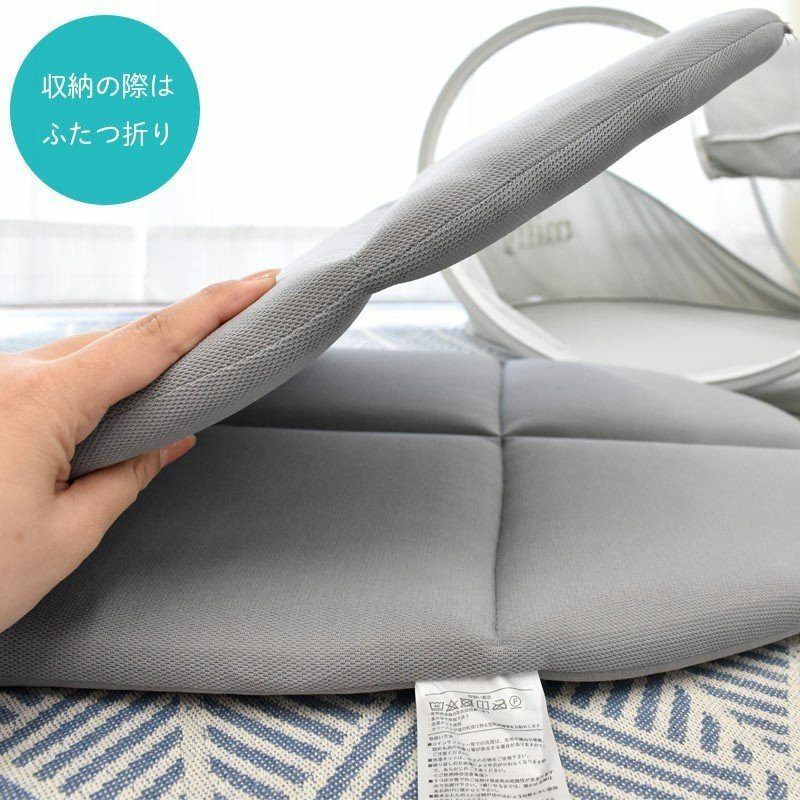 ベッドにぴったりサイズの洗える敷き布団付き。未発達な赤ちゃんの背骨をやさしく支える硬めのお布団。丸洗いもOK!たためてコンパクト、持ち運びに便利なバッグ付き♪