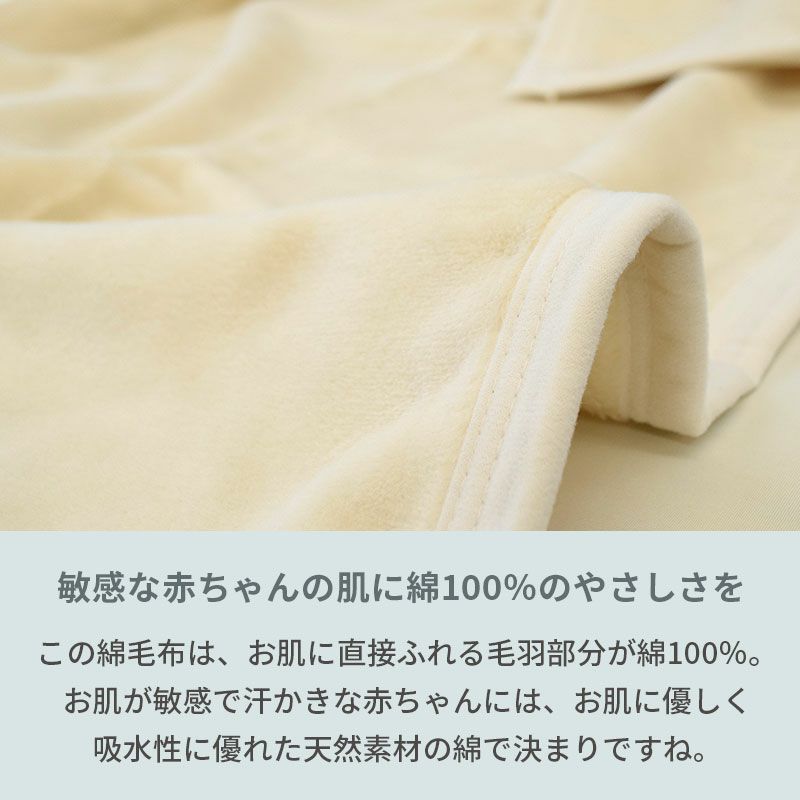 この綿毛布は、お肌に直接触れる毛羽部分が綿100%!
