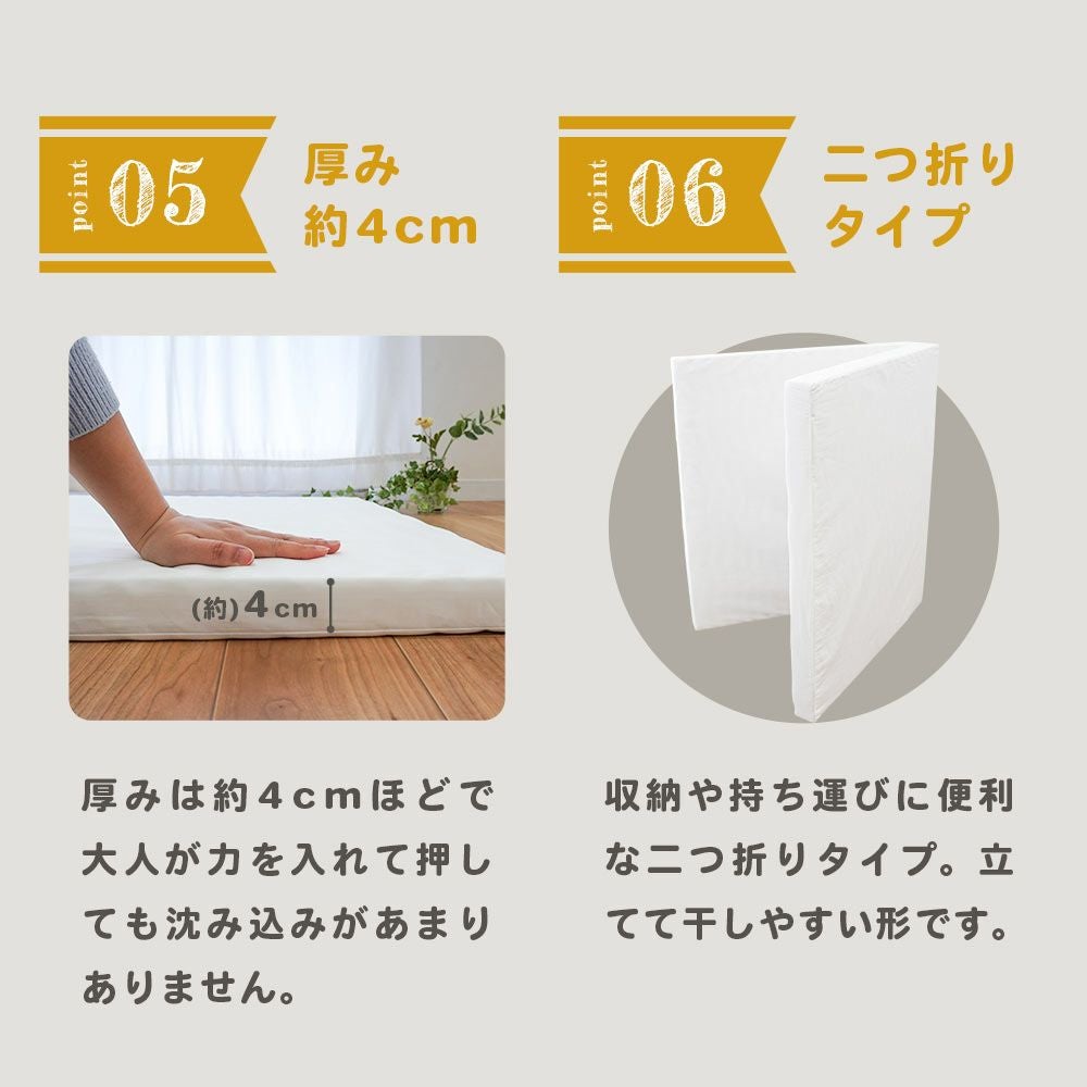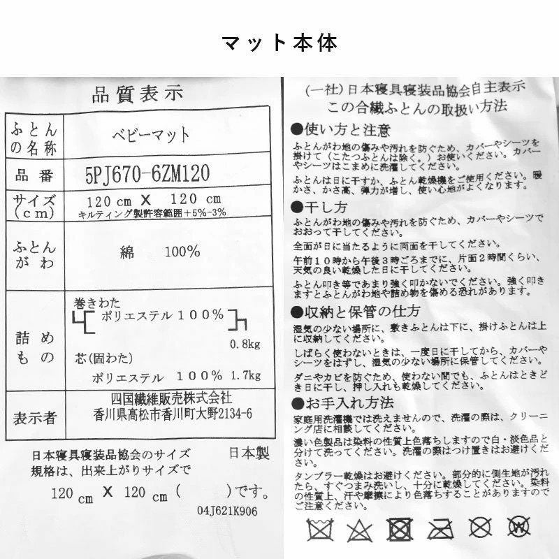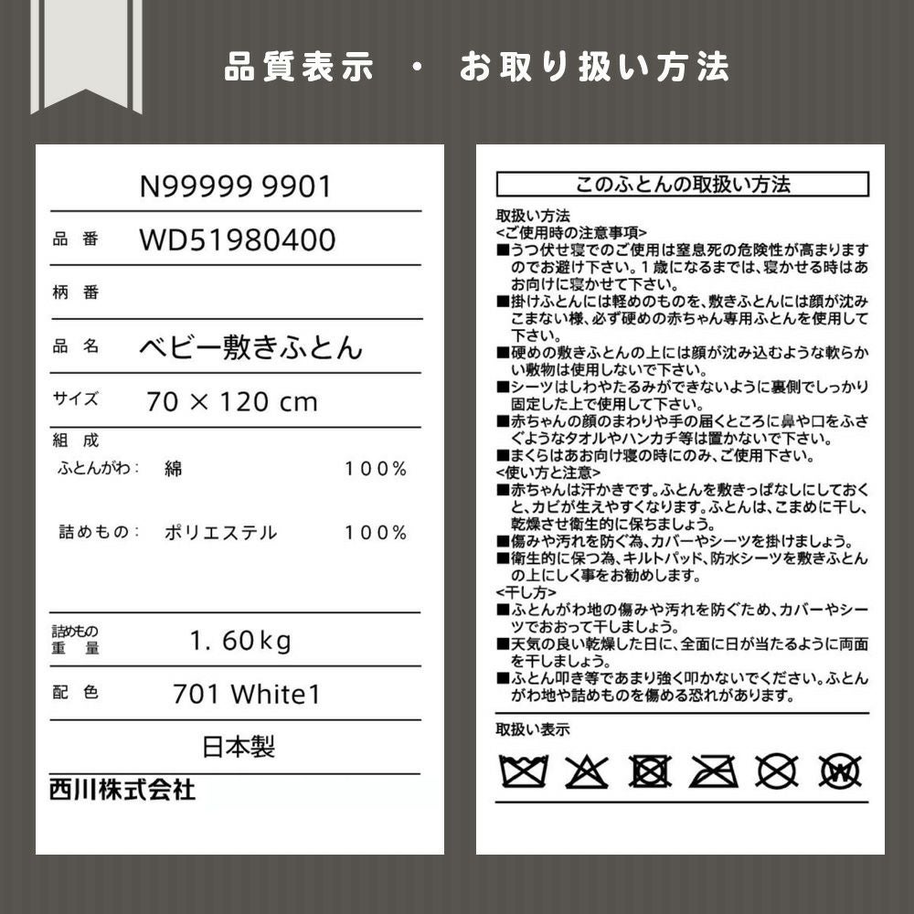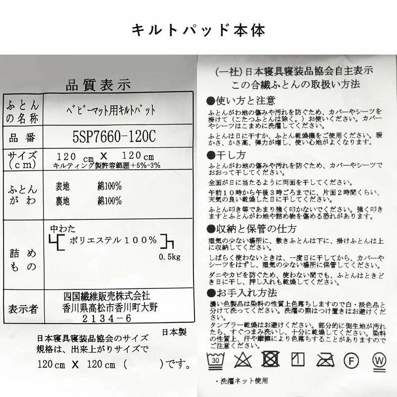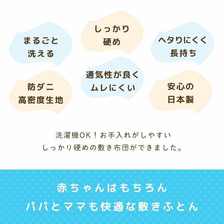 他の画像を見る 在庫切れ 即日発送 【販売終了】ベビー布団 敷布団 レギュラーサイズ 70×120cm 厚み2cm 防ダニ 高密度生地 テイジン 洗濯機で洗える ¥ 4,510 税込 お気に入りに登録する