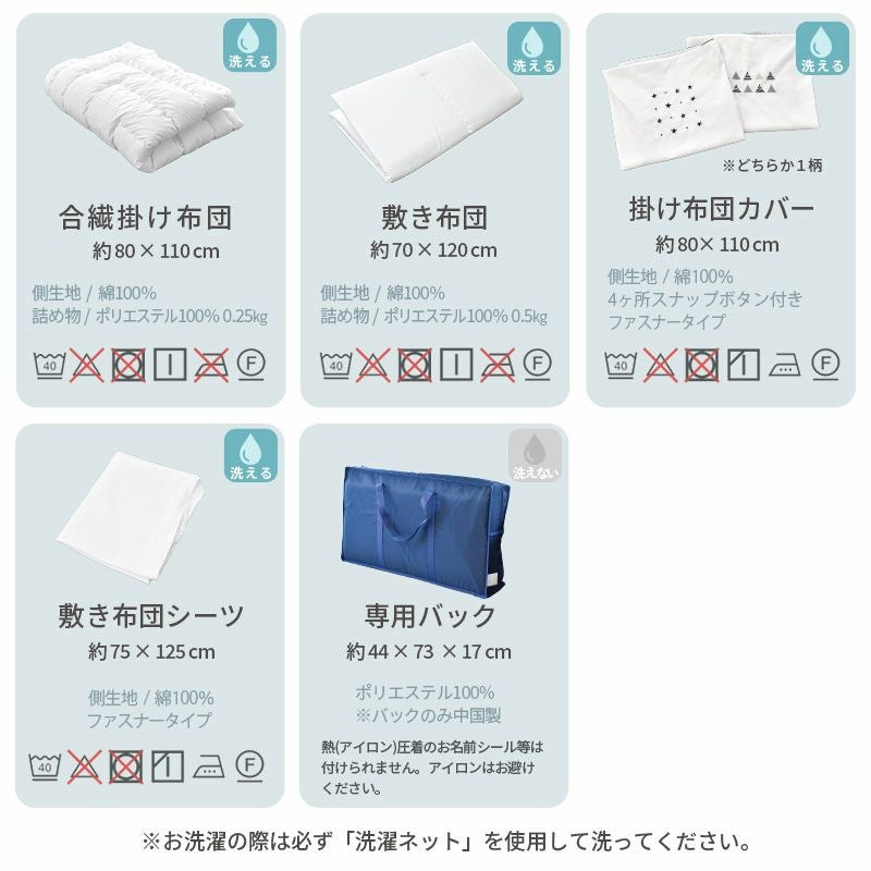 他の画像を見る 即日発送 会員セール ベビー布団セット 安心6点セット 「冬にあったか羽毛布団セット」シンプル モノトーン 刺繍 スター 三角 日本製 西川 ¥ 26,800 税込 お気に入りに登録する