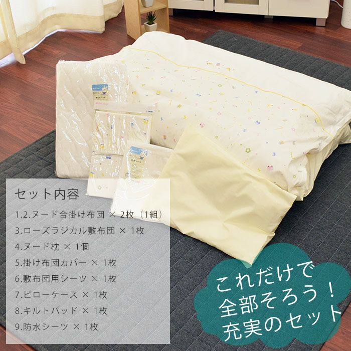 【完売】ベビー布団セット レギュラー 9点セット ローズラジカル敷き布団 洗える掛け布団 日本製 京都西川