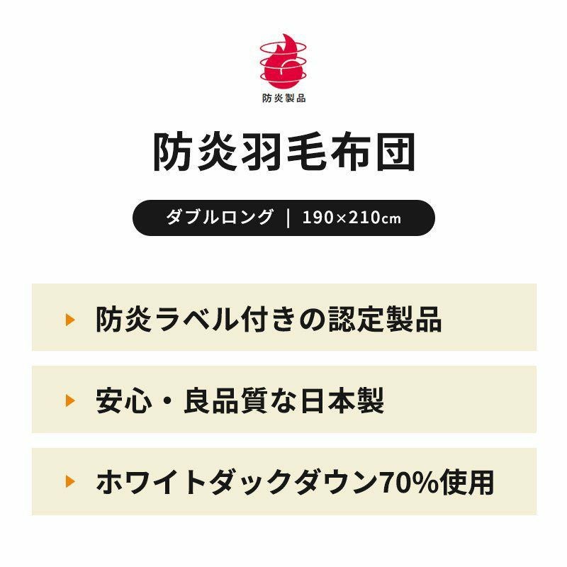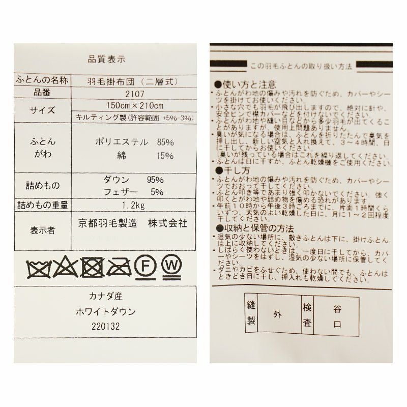 他の画像を見る 在庫切れ 即日発送 会員セール 当社限定 京都羽毛 カナダ産 ホワイトダックダウン95% 羽毛布団 ダブルロング 190×210cm ¥ 63,800 税込 会員セール価格 ¥ 57,420 税込 お気に入りに登録する