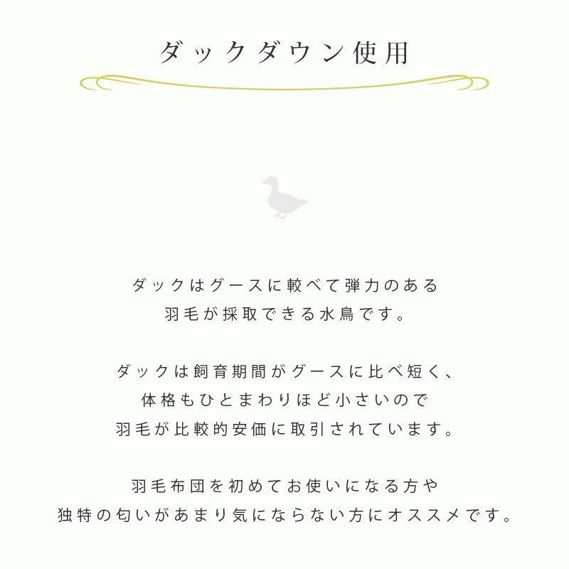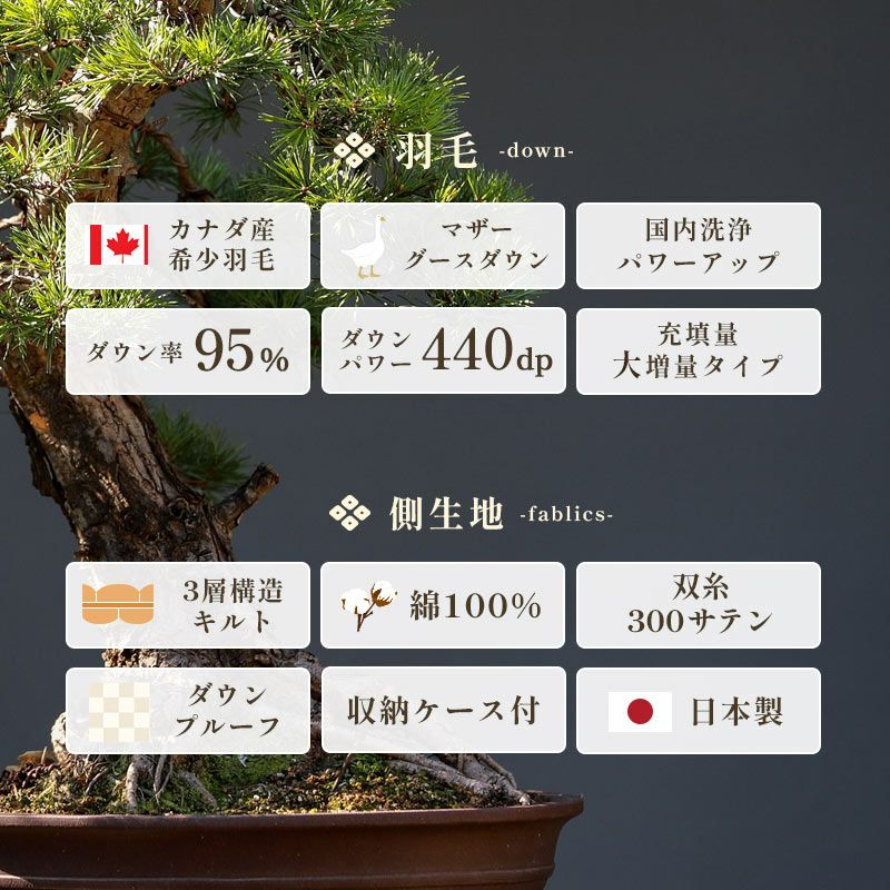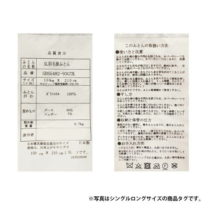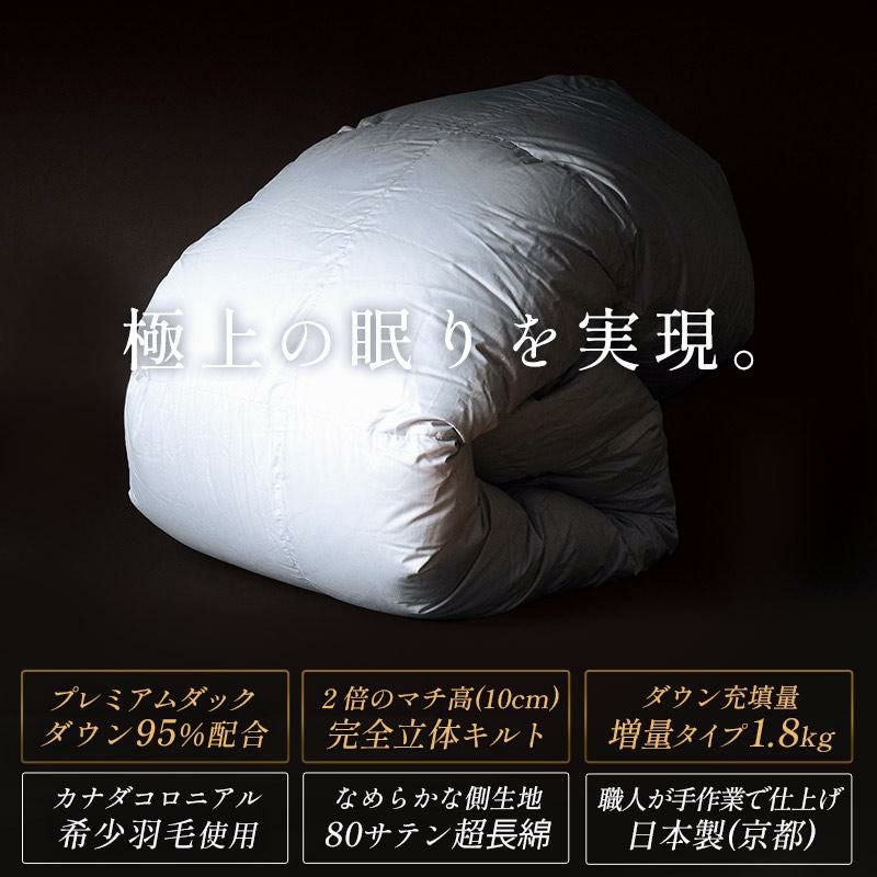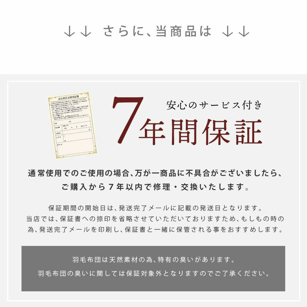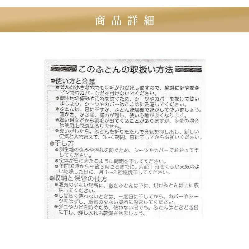 他の画像を見る 在庫切れ 即日発送 当社限定 京都羽毛 銀-shirogane- グースダウン93% 羽毛布団 ダブルロング 190×210cm ¥ 118,000 ¥ 81,800 税込 お気に入りに登録する