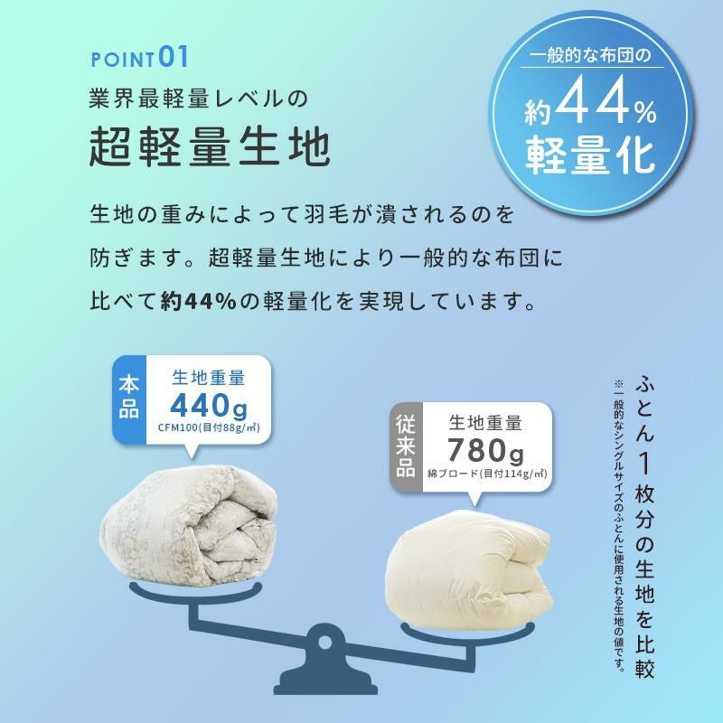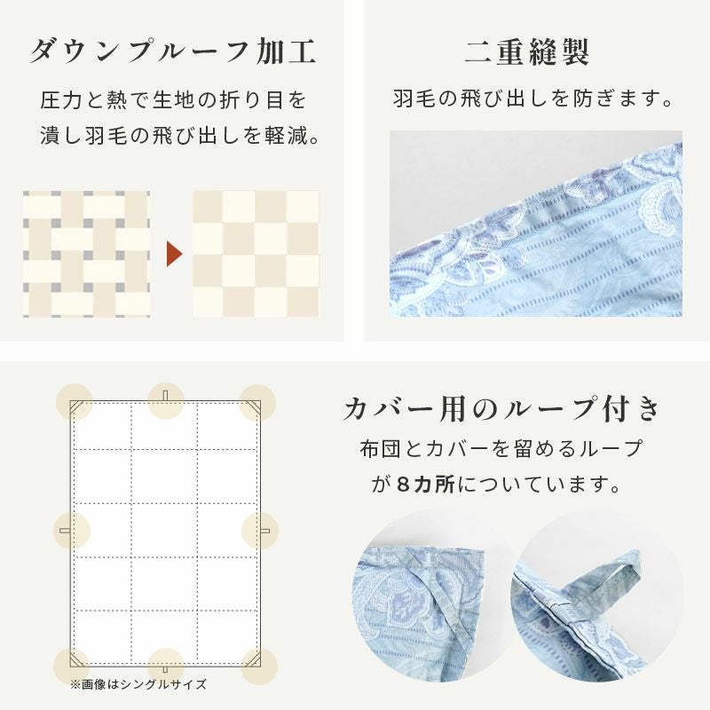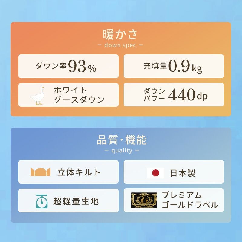 他の画像を見る 会員セール 1年中使える羽毛布団 羽毛布団 2枚合わせ ポーランド産 グース ダウン93% 超長綿 60サテン ダブル ¥ 118,800 税込 会員セール価格 ¥ 106,920 税込 お気に入りに登録する