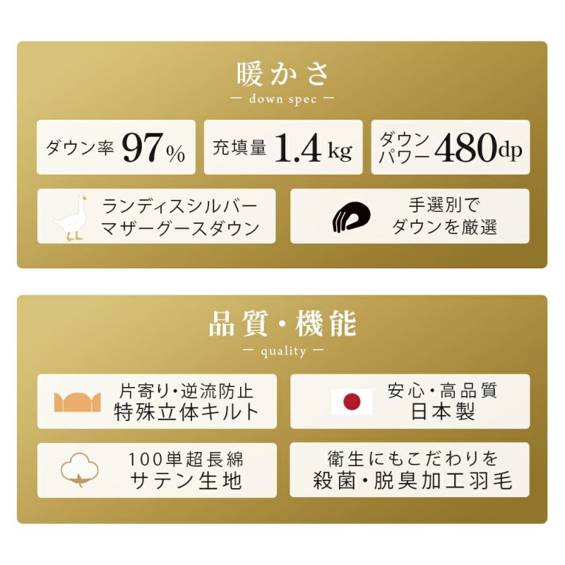羽毛布団 マザーグース 97% ダブル 日本製 480ダウンパワー 抗菌防臭 超長綿