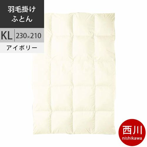 他の画像を見る 在庫切れ 会員セール 西川 西川プレミアム 羽毛掛けふとん ジーリンホワイトグース90% 羽毛布団 KL キングロング 230×210cm 2.1kg 日本製 NP7050 配色I アイボリー 【完全お取り寄せの為、キャンセル不可、代引不可、後払い不可】 【2024AW】 ¥ 209,000 税込 会員セール価格 ¥ 199,000 税込 お気に入りに登録する