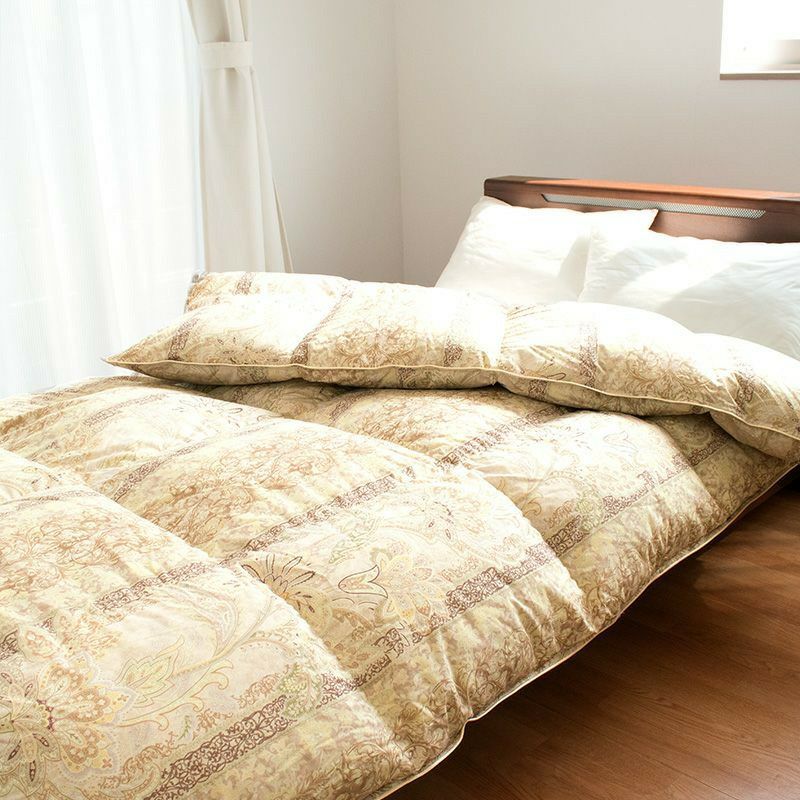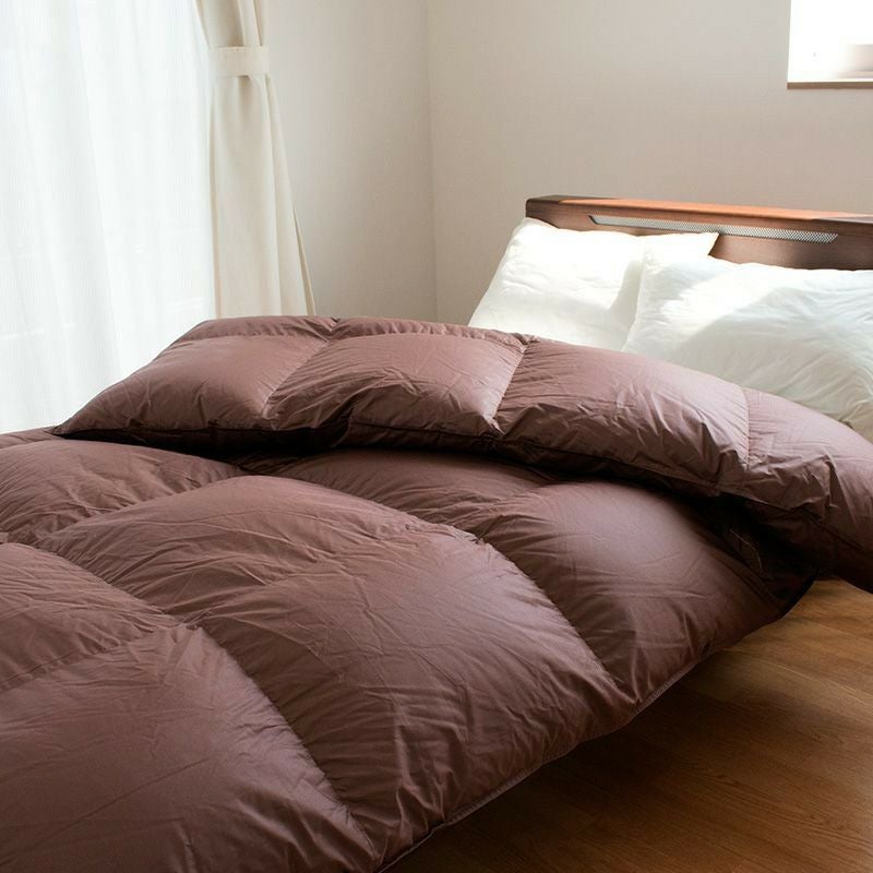 羽毛布団は天然素材の為、無臭ではありません。特に開梱直後や、温度・湿度の関係で臭いが強く感じられる場合もございます。その場合は、羽毛布団に空気を含ませるように数回揺らし、布団内の空気をゆっくり追い出してください。