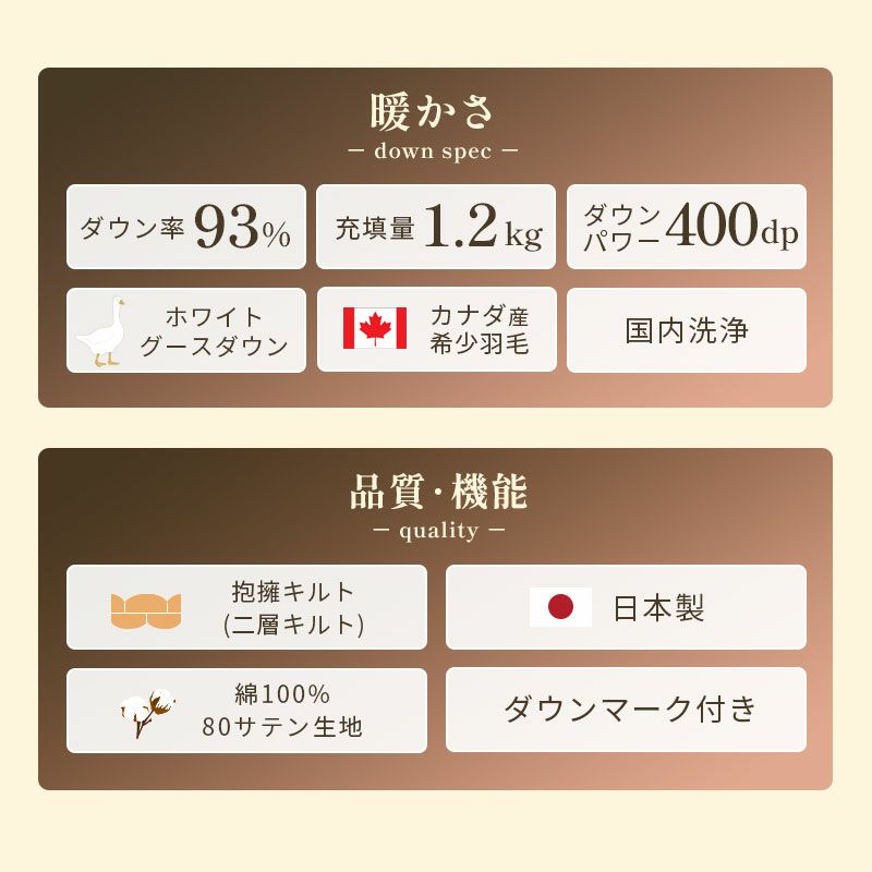 京都羽毛 カナダ産 グース ダウン93% シングル 400dp 80サテン 羽毛布団 梅