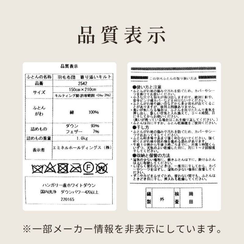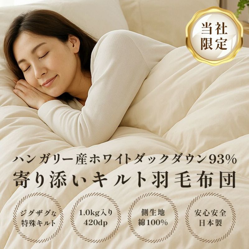 側生地は綿100% 寄り添いキルト 羽毛布団 シングル ハンガリー産 ダウン93% 日本製