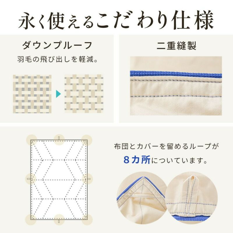 ハンガリー産93%ダウン×420dp以上で、快適なあたたかさ。