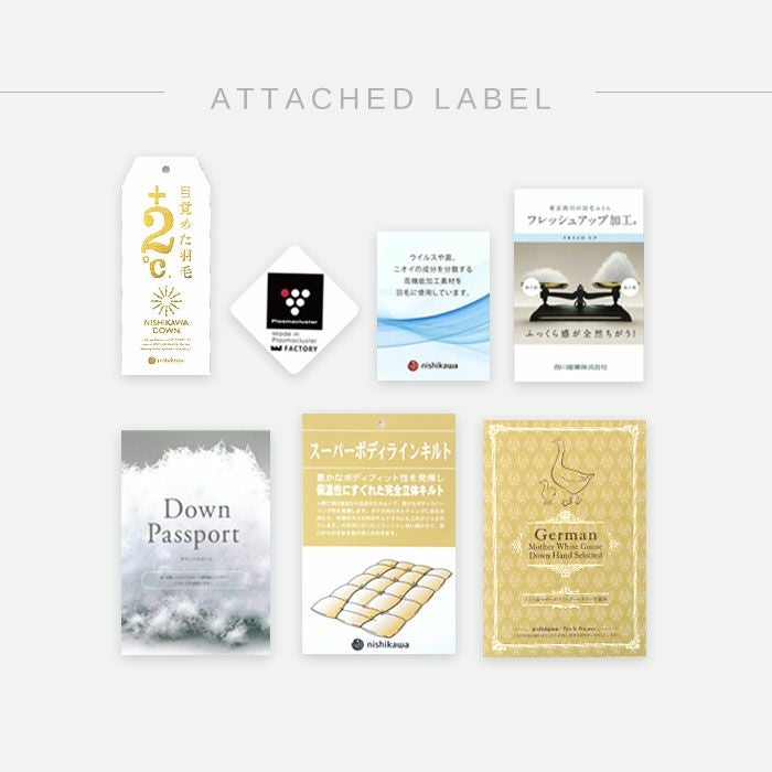 西川独自の特殊技術「バイオアップ®加工」で、加湿乾燥と冷却除塵し、羽毛本来の力を引き出しています。「フレッシュアップ®加工」とは、「バイオアップ®加工」をした羽毛に通し選別を行い、より良質な羽毛だけを選び出した加工です。