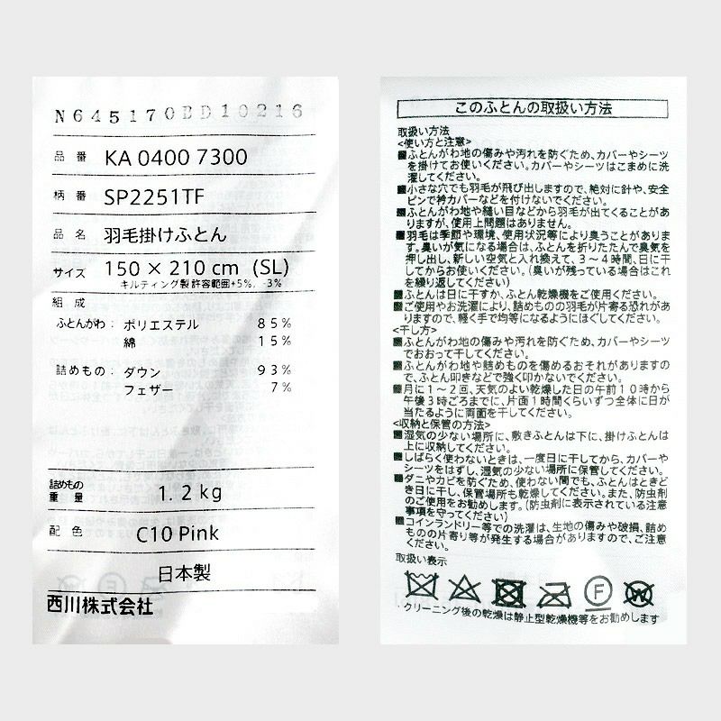 4. 西川 羽毛布団 マザーグース ダウン93% シングルロング 150×210cm 安眠工房