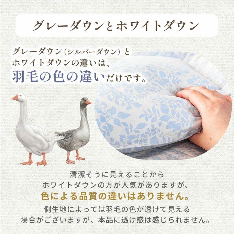 なお、グレーダウン(シルバーダウン)とホワイトダウンの違いは「羽毛の色の違いだけ」です。清潔そうに見えることからホワイトダウンの方が人気がありますが、色による品質の違いはありません。側生地によっては羽毛の色が透けて見える場合がありますが、本品に透け感は感じられません。
