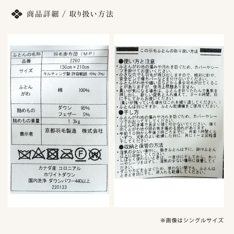 5. 京都羽毛 銅 -akagane- プレミアムダックダウン95% 羽毛布団 セミダブルロング 170×210cm