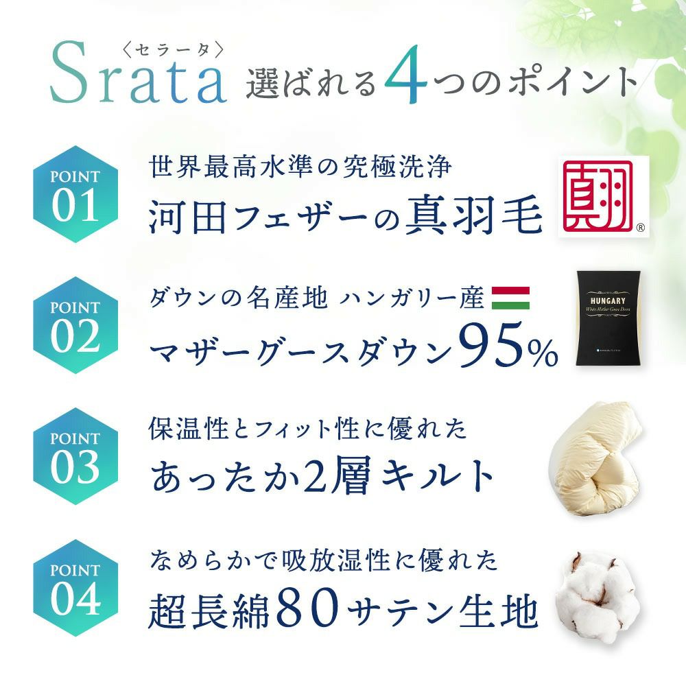他の画像を見る 会員セール 1年中使える羽毛布団 羽毛布団 2枚合わせ ポーランド産 グース ダウン93% 超長綿 60サテン クイーン ¥ 139,900 税込 会員セール価格 ¥ 125,910 税込 お気に入りに登録する
