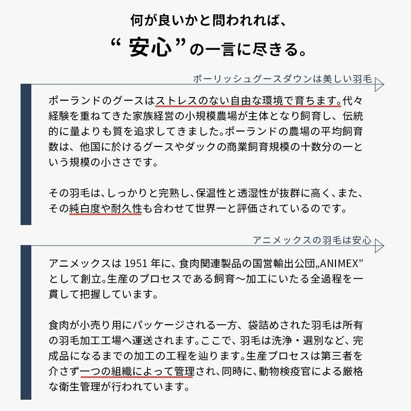 他の画像を見る 会員セール 羽毛布団 マザーグース ダウン95% 440dp ポーランド産 シングル超ロング ANIMEX ¥ 185,000 税込 会員セール価格 ¥ 166,500 税込 お気に入りに登録する