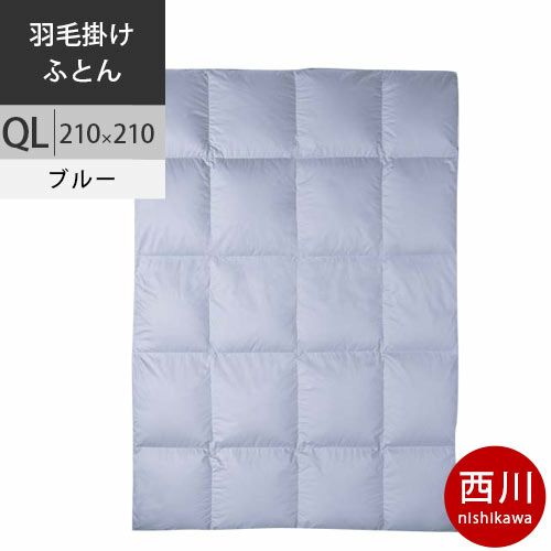 他の画像を見る 在庫切れ 会員セール 西川 西川プレミアム 羽毛掛けふとん ジーリンホワイトグース90% 羽毛布団 QL クイーンロング 210×210cm 1.9kg 日本製 NP7050 配色B ブルー 【完全お取り寄せの為、キャンセル不可、代引不可、後払い不可】 【2024AW】 ¥ 187,000 税込 会員セール価格 ¥ 177,000 税込 お気に入りに登録する