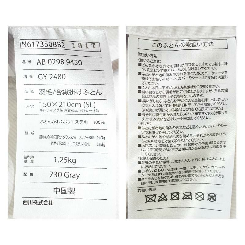 他の画像を見る 在庫切れ 会員セール 西川 西川プレミアム 羽毛掛けふとん ポーランドホワイトマザーグース93% 羽毛布団 DL ダブルロング 190×210cm 1.7kg 日本製 NP7054 配色GR グレー 【完全お取り寄せの為、キャンセル不可、代引不可、後払い不可】 【2024AW】 ¥ 577,500 税込 会員セール価格 ¥ 567,500 税込 お気に入りに登録する