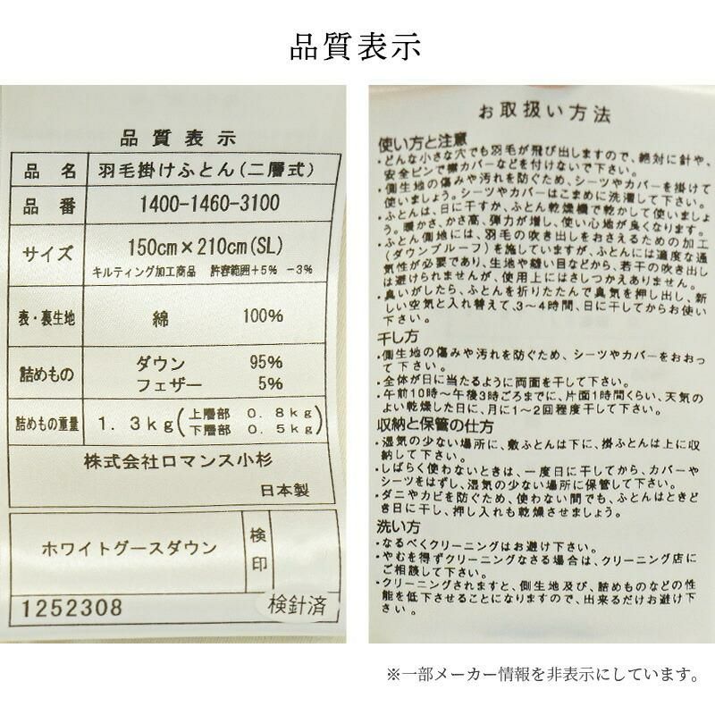 他の画像を見る 在庫切れ 即日発送 当社限定 京都羽毛 京都職人の羽毛布団 シングル ダウン85% 京都羽毛 初 (うい) 増量1.2kg 150×210cm 4.00 ¥ 16,800 税込 お気に入りに登録する