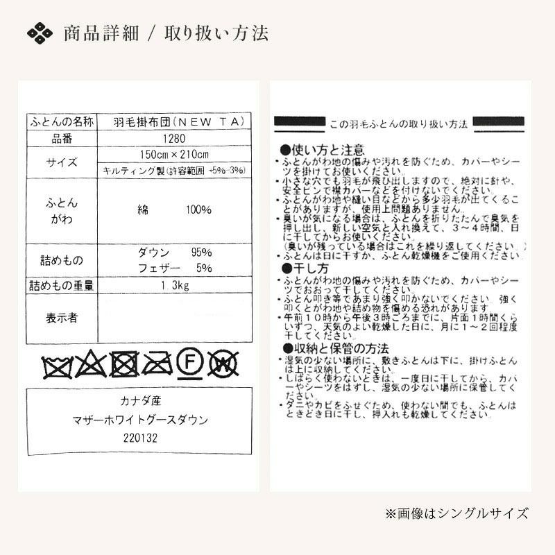 創業450年以上の信頼。日本の最王手寝具メーカー「西川」のマザーグースを使用した羽毛布団です。