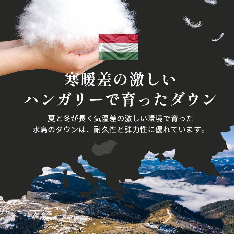 寒暖差の激しいハンガリーで育ったグースダウン93%配合!