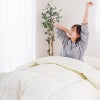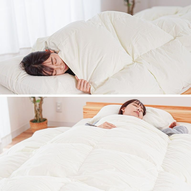羽毛布団は天然素材の為、無臭ではありません。特に開梱直後や、温度・湿度の関係で臭いが強く感じられる場合もございます。その場合は、羽毛布団に空気を含ませるように数回揺らし、布団内の空気をゆっくり追い出してください。
