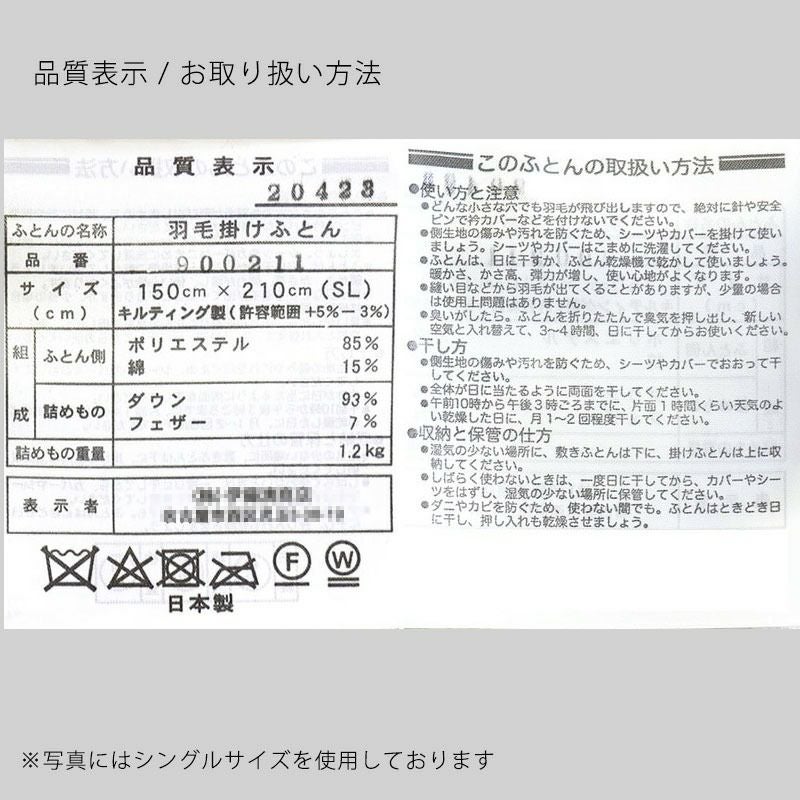 5. ウクライナ産 グース 羽毛布団 シングル ダウン93% ロイヤルゴールド