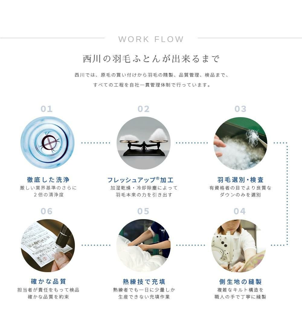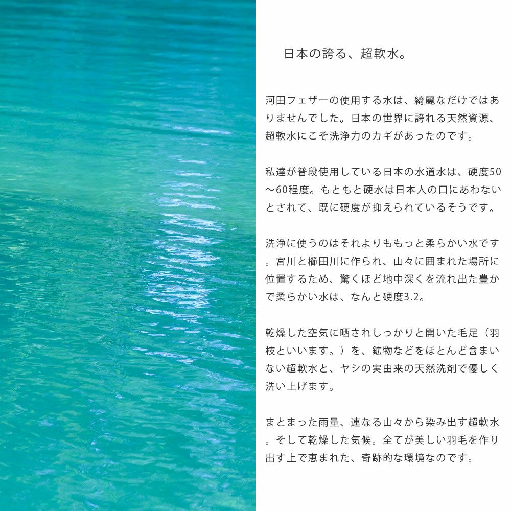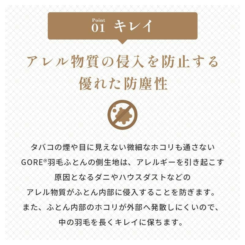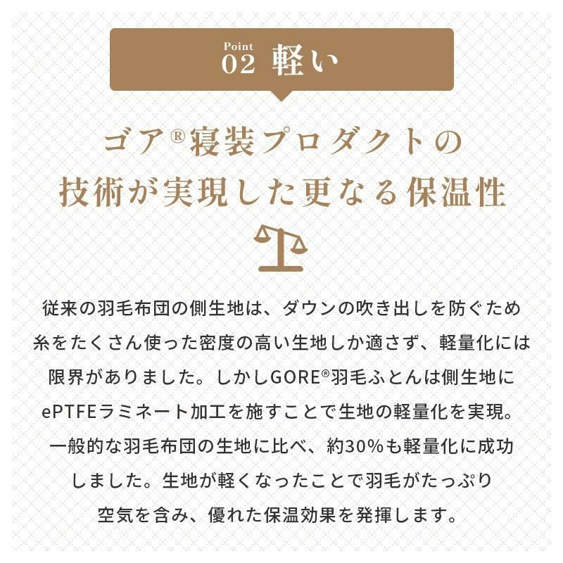 ふんわり軽い羽毛は多くの空気を含んでいるので暖かく、寒い夜でも安心して眠ることができます。