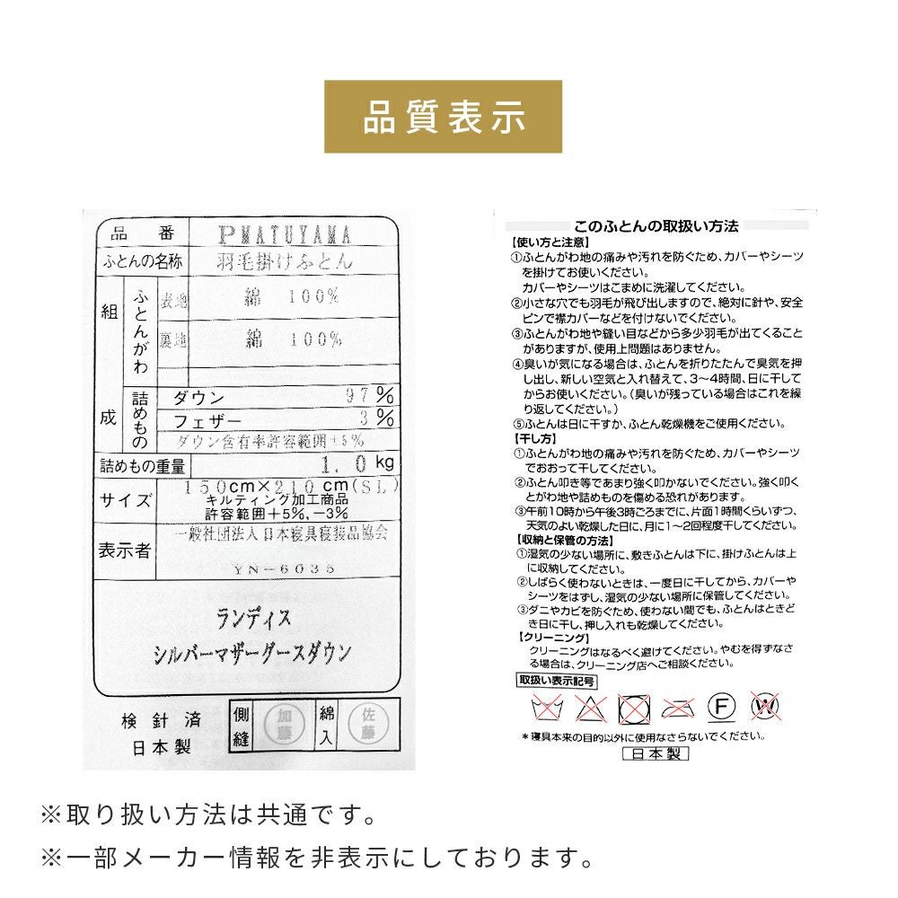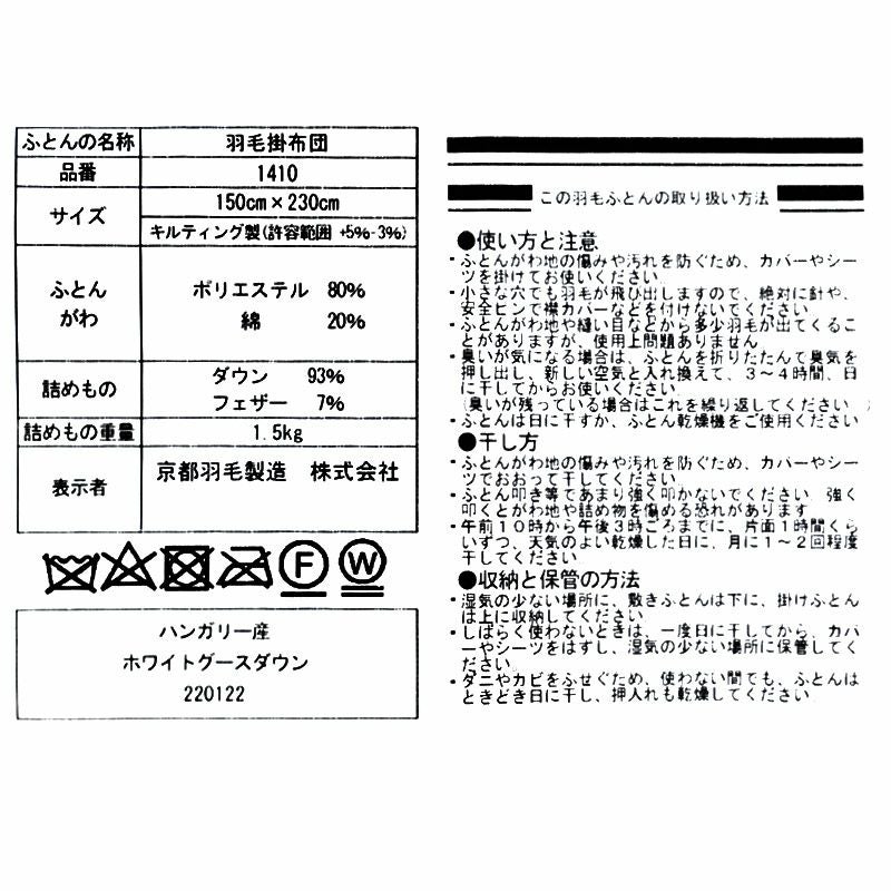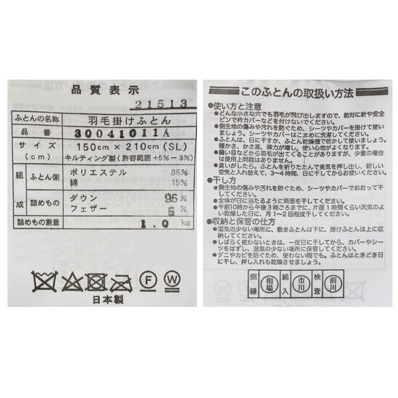 羽毛布団 合掛け(春・秋)