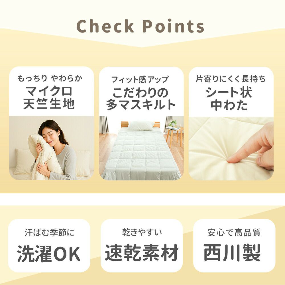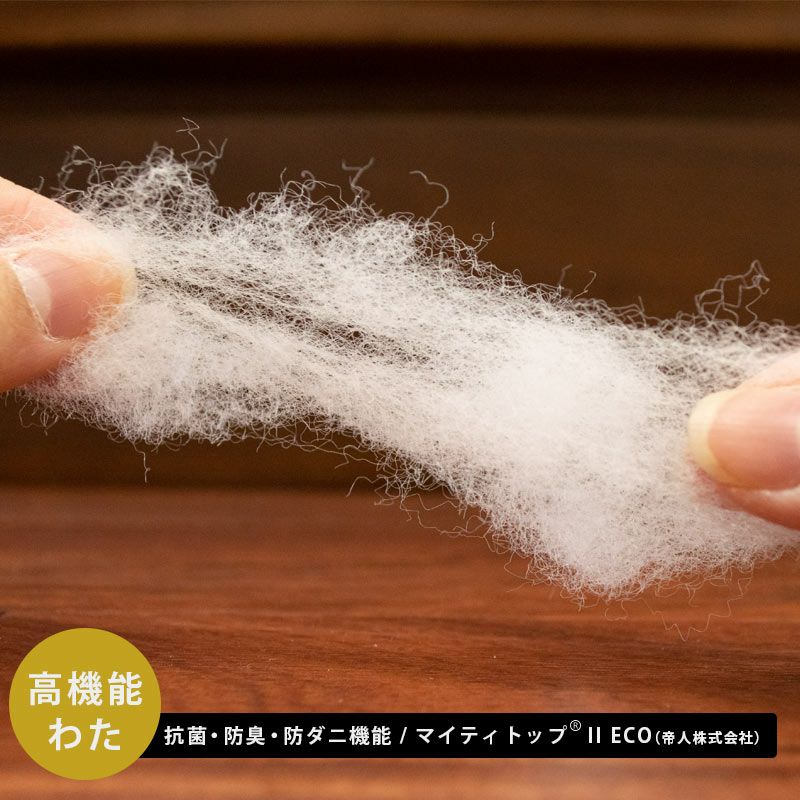 ふっくらやわらかな感触で身体を優しく包み込む、洗える掛け布団です。国内工場で丁寧に仕立てた安心品質で、中わたには清潔素材「ダクロン クォロフィル アクア」を使用。乾きやすく、お洗濯後もふっくら感が続きます。ホコリが出にくく、定期的にお洗濯すればダニやカビを抑えてアレルギー対策にもなる、毎日気持ちよく使える1枚です。