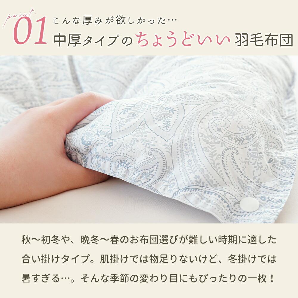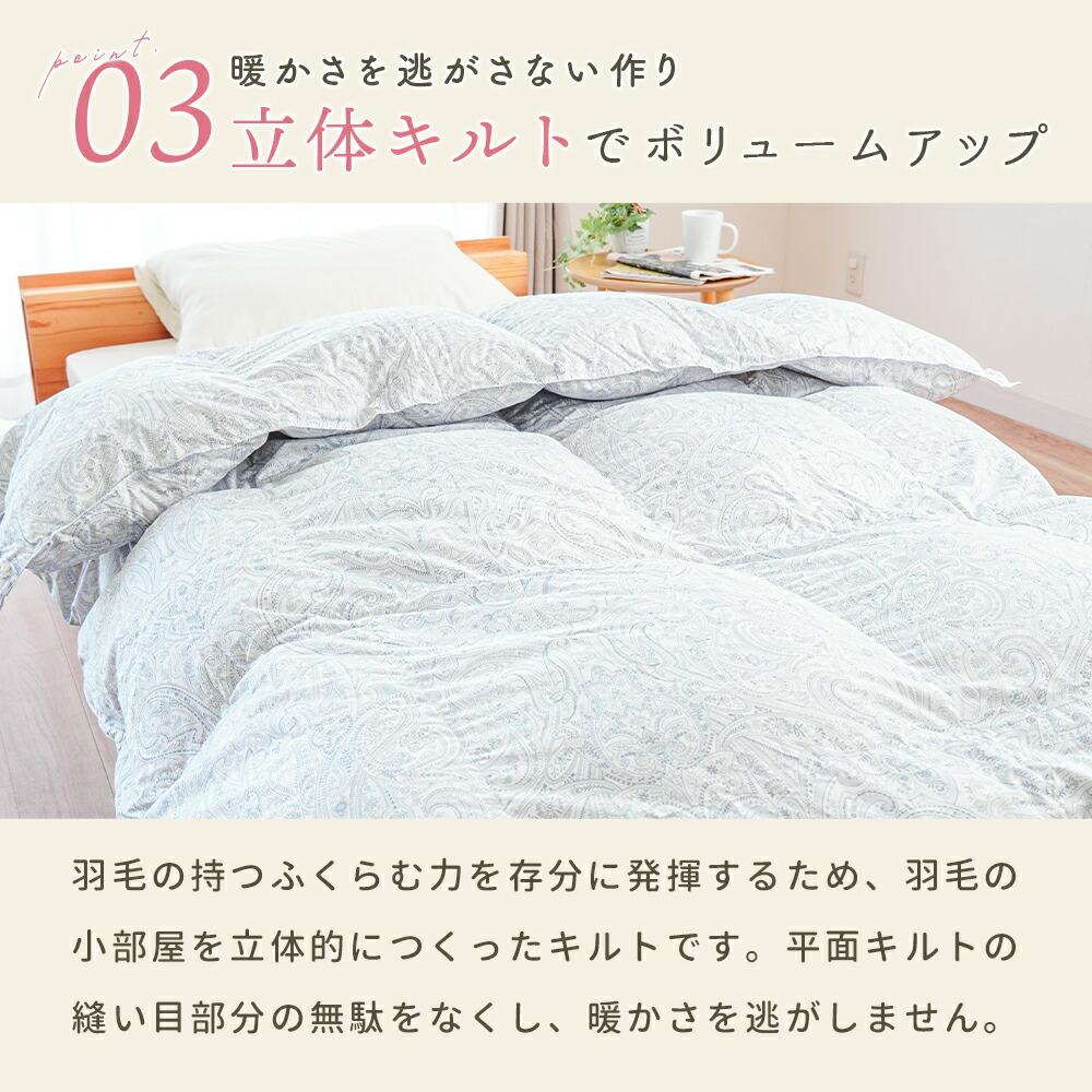 ふっくらやわらかな感触で身体を優しく包み込む、洗える掛け布団です。国内工場で丁寧に仕立てた安心品質で、中わたには清潔素材「ダクロン クォロフィル アクア」を使用。乾きやすく、お洗濯後もふっくら感が続きます。ホコリが出にくく、定期的にお洗濯すればダニやカビを抑えてアレルギー対策にもなる、毎日気持ちよく使える1枚です。