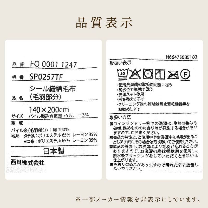 5. 西川 高野口パイル 綿毛布 シングル 綿100% 日本製