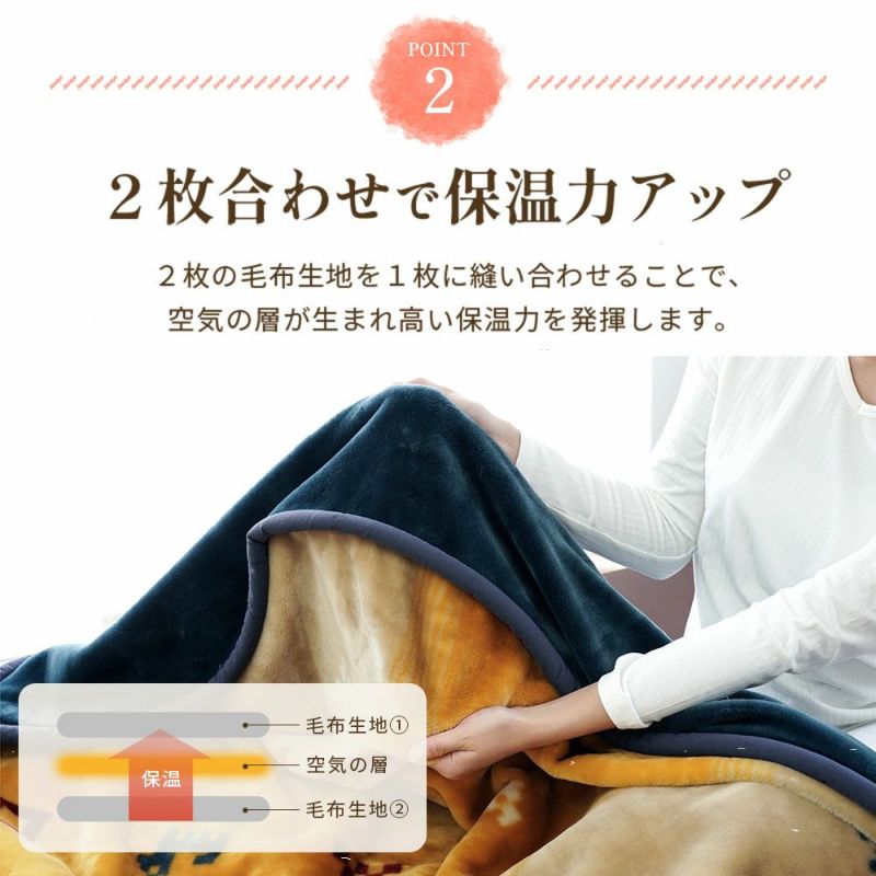 • 2枚合わせ毛布とは生地を2枚重ねて1枚の毛布にしたものです。2枚セットではございませんのでお間違えのないようご承知おきください。
