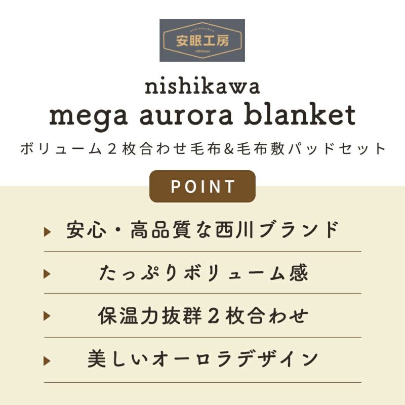 お得な2点セット 西川 メガオーロラ 毛布 掛け敷きセット シングル