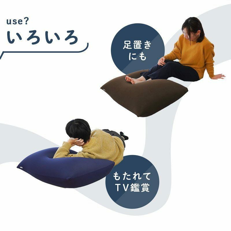 約60cm角の大きなサイズで、座布団代わりにしたり、大きい枕にしたり、もたれかかったり、足置きにしたり、使い方はいろいろ!