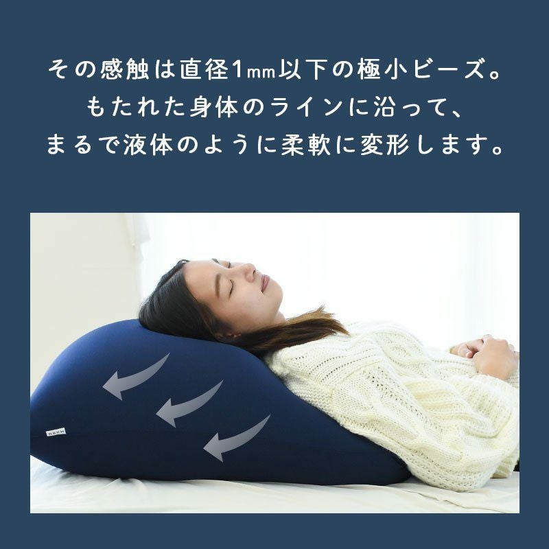 中身には直径1mm以下の極小パウダービーズ入り。もたれた身体のラインに沿って、まるで液体のように柔軟に変形します。