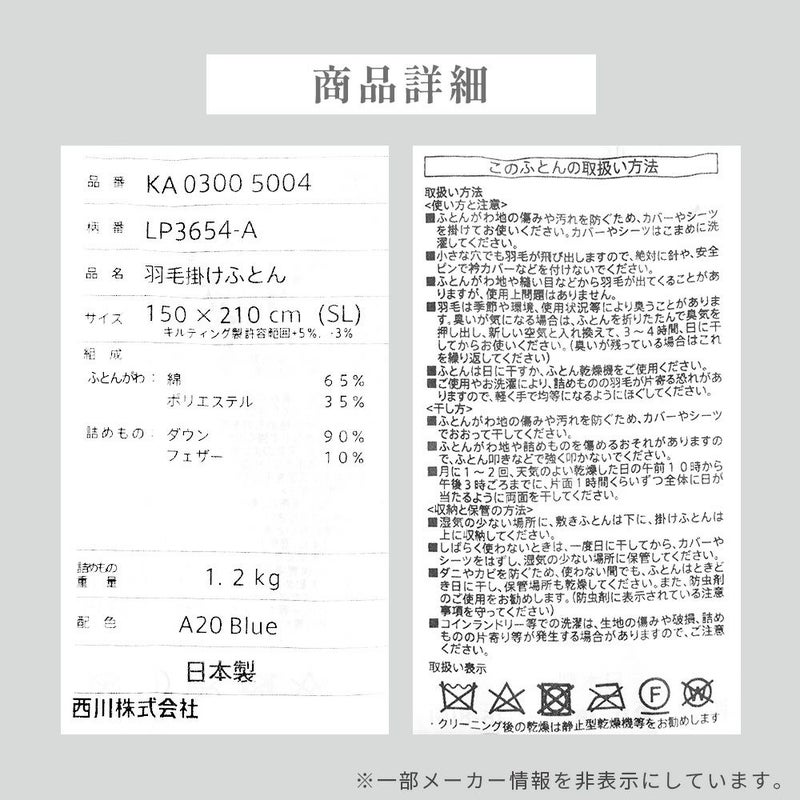 5. 西川 羽毛布団 グース ダウン90% シングル 日本製 圧縮 150×210cm