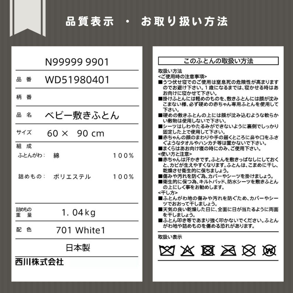 他の画像を見る 即日発送 会員セール ベビー布団セット ミニ 60×90cm用 安心6点セット 「キホンが揃ったお手軽セット」シンプル モノトーン 刺繍 スター フラッグ 日本製 西川 5.00 ¥ 14,990 税込 会員セール価格 ¥ 13,491 税込 お気に入りに登録する