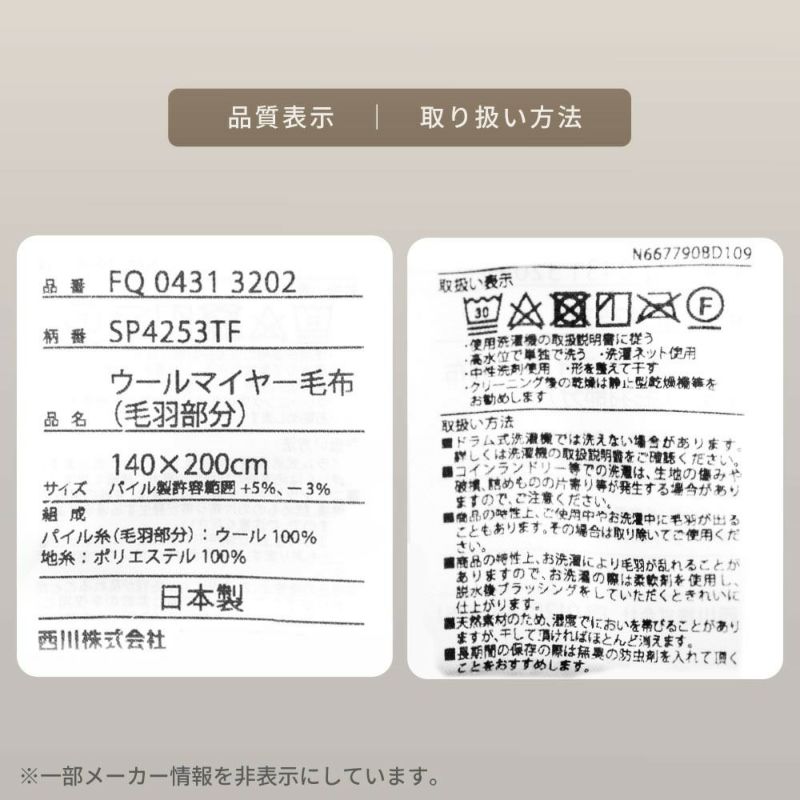 5. 西川 洗える ウール 毛布 シングル 日本製